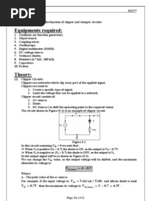 Lab Manuals To Implement Diode Clamper Circuits And Observe